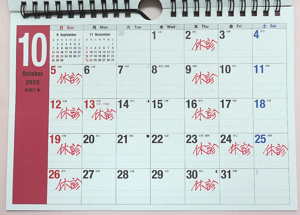 ×※祝祭日は休診します。なお、3日以上の連休がある場合は、近接する木曜日または祝祭日に代替診療することがありますので、「診療カレンダー」を確認のうえ電話にてお問い合わせください。この場合も診療の終業は午後6時です。